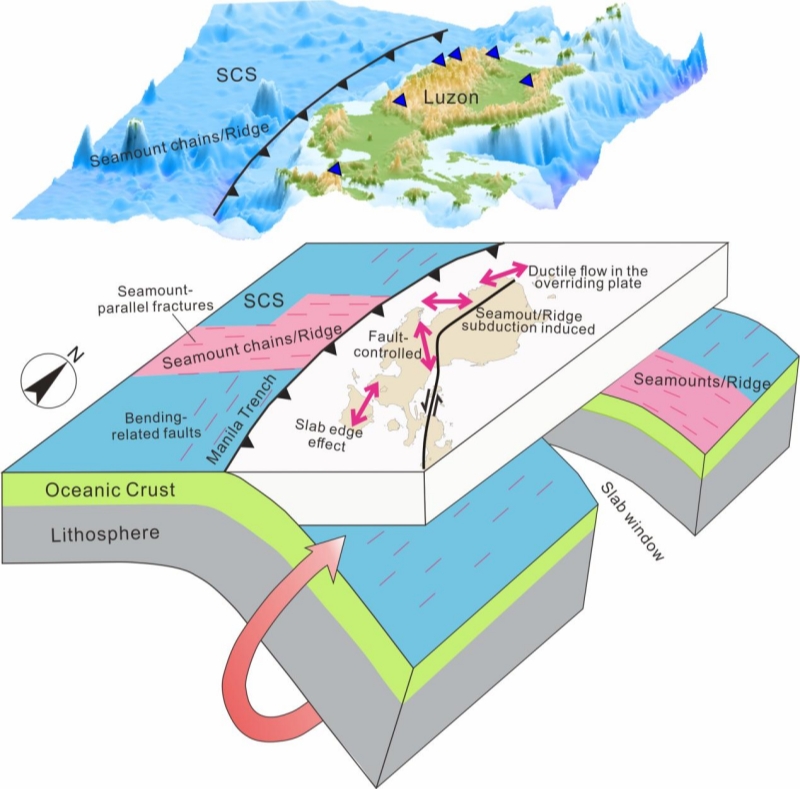 吕宋北部位于欧亚板块与菲律宾海板块汇聚边界,是典型的成熟俯冲带。多座大型海山沿马尼拉海沟俯冲,被认为可能显著调节区域应力场及地震活动,但其具体机制长期缺乏直接证据。