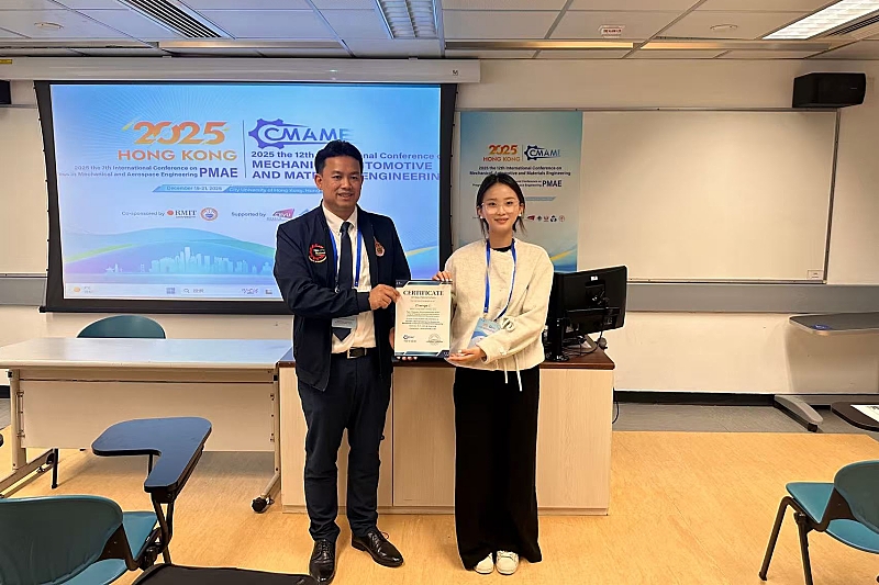 12月19日至21日,我校理学院副教授邵东旭带领化学专业本科生李晨格前往香港参加CMAME2025会议。会议全称为2025 the 12th International Conference on Mechanical,Automotive and Materials Engineering(CMAME2025)。此次会议由澳大利亚皇家墨尔本理工学院和南亚科学与工程学院(SAISE)联合主办,香港城市大学承办,汇聚了全球机械、汽车与材料工程等领域的专家学者,为参会者提供了面对面讨论交流新想法和应用、建立业务或研究关系以及寻找未来全球合作伙伴的机会。