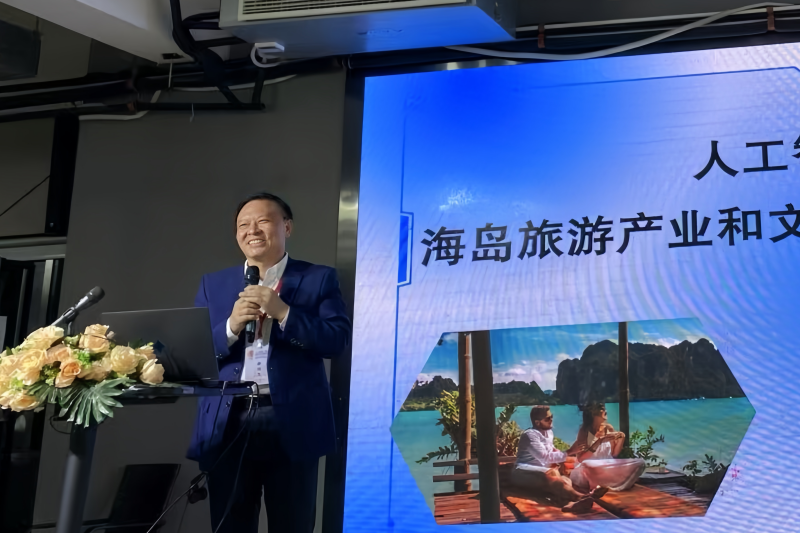 廖民生在研讨会上作题为“人工智能助力海岛旅游产业和文旅人才培养高质量发展”的主旨报告,汇报了其带领的省级人才团队的最新研究成果,并重点分析了AI时代海岛旅游产业发展的新业态、新策略和新路径。