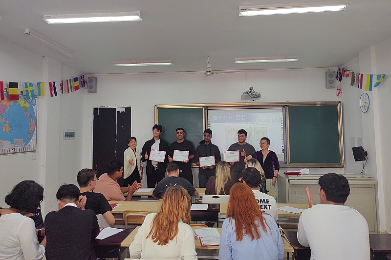 鲁晓丽和留学生中心教师为同学们逐一颁发结业证书。每一份证书都承载着学习成果,更凝结着跨国情谊。