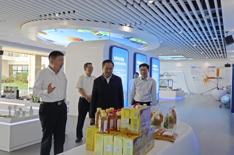 讲座后,王斌一行到学校国家大学科技园和东盟楼,观看转海发展十年成果展,听取学科建设、科技研发,以及学校面向国(境)外开展线上中文教学相关情况的汇报。