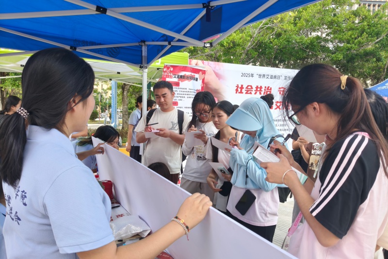 2025年12月1日是第38个“世界艾滋病日”。为进一步提升全校师生防艾意识与防护能力,筑牢青春无“艾”校园防线,12月3日,海南热带海洋学院卫生保健服务中心联合三亚市疾病预防控制中心、海南省第五人民医院共同开展“社会共治,守正创新,终结艾滋”——2025年“世界艾滋病日”系列宣传活动。校党委常委、副校长那广水参加活动。