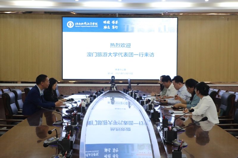 12月10日下午,校长吕治国在学校三亚校区216会客室会见澳门旅游大学代表团。双方围绕海洋文旅、渔业观光等相关领域合作进行交流。