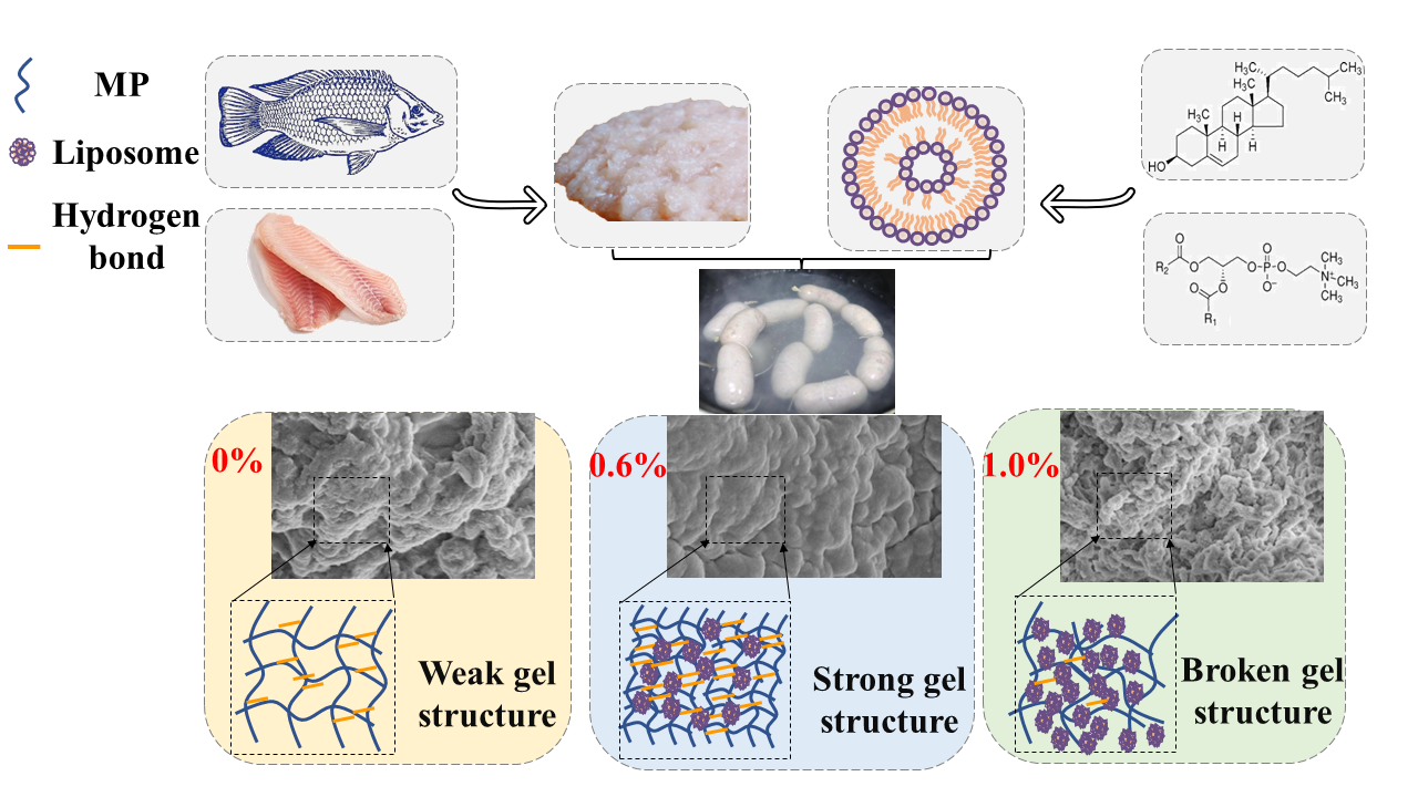 自日本将核污水排海后,罗非鱼等大规模养殖淡水鱼类越来越受到重视。目前,海南省罗非鱼生产量在全国排名第二位。如何将罗非鱼加工成安全、营养、方便的食品,成为海南水产品加工行业急需解决的问题。与海水鱼类相比,罗非鱼缺乏DHA、EPA、磷脂、部分维生素和矿物质等营养成分,影响其产品的价值。该团队为了解决上述问题,开发出能负载营养成分的脂质体载体,对脂质体在罗非鱼糜凝胶形成过程中与肌原纤维蛋白相互作用的机制进行了深入研究。
