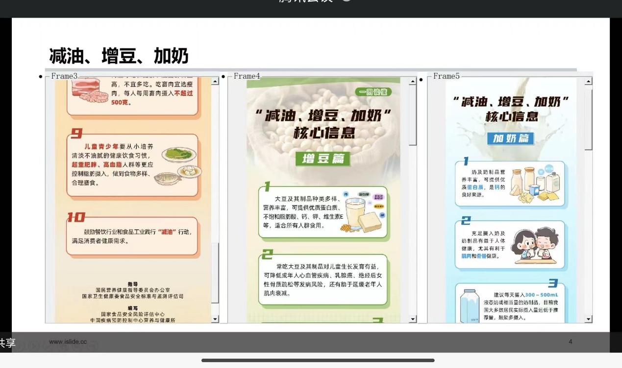 主讲老师朱婷婷紧扣2024年全民营养周的宣传主题“奶豆添营养 少油更健康”,介绍了目前我国居民的奶类和豆类摄入情况,提倡将奶类和大豆食物作为优质蛋白质、钙和B族维生素的来源,学会科学用油,提升膳食质量,改善身体健康状况。最后她从日常生活中的实例出发,全面解读了“减油、增豆、加奶”的核心理念和具体措施,帮助同学们正确认识“减油、增豆、加奶”在健康维持方面的积极作用。