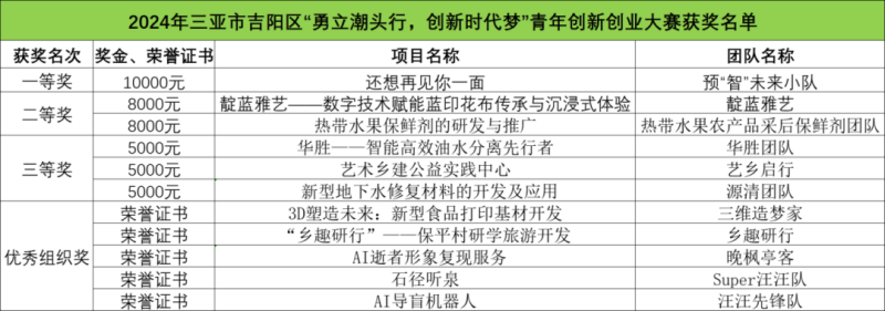 5月25日,由共青团三亚市吉阳区委员会、吉阳区人力资源和社会保障局、吉阳区委人才发展局主办的2024年三亚市吉阳区“勇立潮头行,创新时代梦”青年创新创业大赛决赛圆满举办。