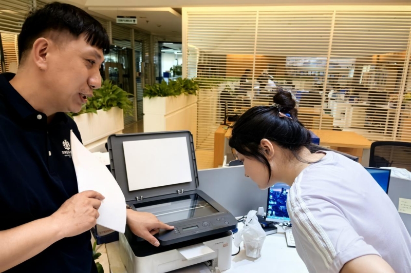 实习首日下午,学生们分赴集团核心部门开展沉浸式学习。在行政办公区,集团经理吴挺洲采用“演示-实操-纠偏”三步教学法,指导学生操作打印机等办公设备,并特别强调了文件处理规范与保密制度。