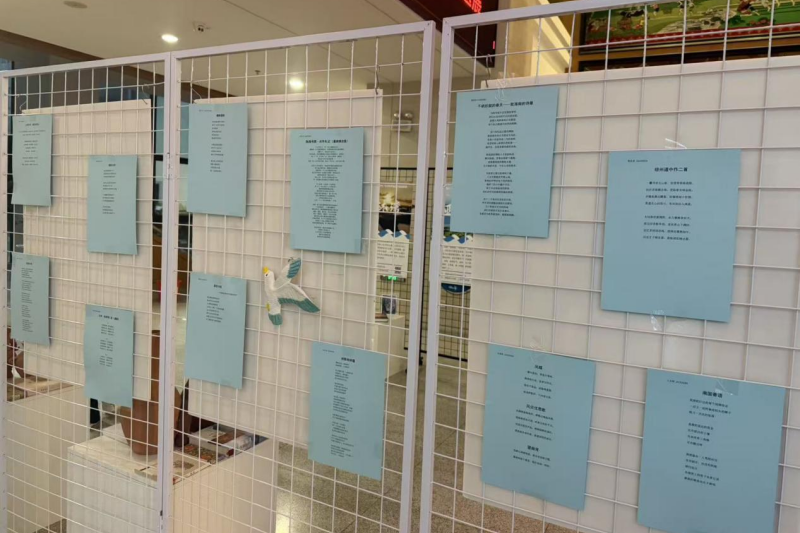本次展览以山海文化为纽带,串联雨林生态、海洋文明与人文情感,通过“雨林密码”“蔚蓝之境”“琼州诗话”三大展区的多维呈现,彰显琼州大地在传承中创新、在开放中发展的精神风貌,为师生打造了一场兼具历史厚度与时代温度的文化盛宴。其中“雨林密码”展区展示五指山、尖峰岭等雨林奇观,文献史料梳理生态脉络,实体展柜的黎锦、黎陶实物,让观众触摸文化肌理。“蔚蓝之境”展区呈现亚龙湾、棋子湾等海湾风光,文献展现港口贸易变迁与海洋资源保护。中央渔船模型配渔网、浮标,营造渔家场景,呼应海南解放历史,见证琼州发展蜕变。“琼州诗话”展区展30篇“我与海南”征文,作品融山水描摹、民俗记录与自贸港礼赞,串联个人情感与家乡发展。
