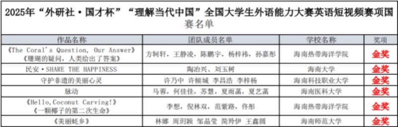 喜报!海南热带海洋学院学子在2025年“外研社•国才杯”“理解当代中国”系列竞赛中斩获佳绩,成功晋级全国总决赛