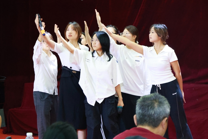 汇演在合唱《夜空中最亮的星》中拉开序幕,65位同学用嘹亮歌声点亮舞台,瞬间点燃现场氛围。随后,戏剧、舞蹈、独唱等11个节目依次登场,形式多样、内容丰富。《告别南洋》《青春之火点燃长征之路》两部戏剧,以生动演绎回溯峥嵘岁月,传递赤子情怀与奋斗力量;《站立提沉组合》等舞蹈节目,或舒展大气或灵动俏皮,用肢体语言书写青春诗行;《世界赠予我的》《如果呢》《指纹》等独唱曲目,旋律悠扬、情感真挚,诉说着青春里的细腻心事与美好憧憬;合唱《微微》《紫荆花盛开》则以和声传递温暖与荣光,前者诠释微光汇聚的力量,后者彰显家国同心的情怀,赢得现场阵阵掌声。