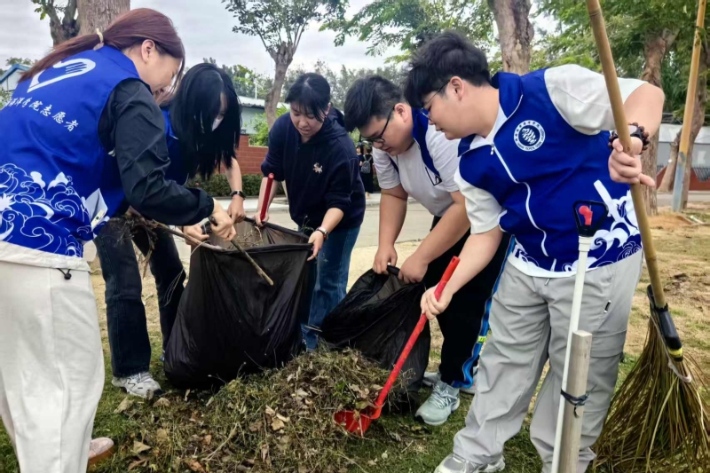 活动期间,学院干部师生共同对宿舍、劳动教育实践责任区等区域进行了全面清理。在图书馆周边、教学楼绿地、学生宿舍等场所,身着蓝色志愿服的同学们穿梭其间,成为校园里一道亮丽的风景。大家仔细清理枯枝落叶,有序摆放自行车,使校园面貌焕然一新。宿舍区内,同学们认真清扫地面、整理内务,对门窗、阳台、卫生间等卫生死角进行彻底清洁,在辛勤劳动中真切体会劳动的价值与乐趣。