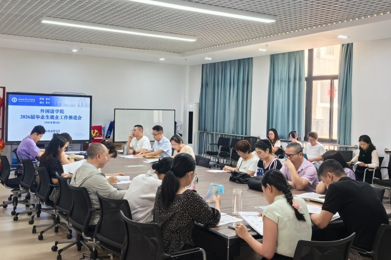 为深入贯彻落实学校关于2026届毕业生就业工作部署要求,全力推进毕业生高质量充分就业,4月1日,外国语学院召开2026届毕业生就业工作推进会。学院领导班子成员及全体毕业论文指导教师、辅导员、专业负责人、毕业班班主任等参会。