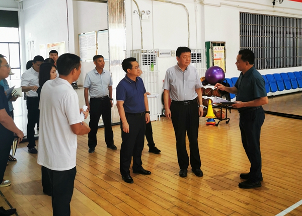 严连勇一行先后到我校体育馆和田径场进行现场调研,了解场馆(场地)改造进展情况,并对场馆(场地)改造工作及周边环境美化工作提出了要求。