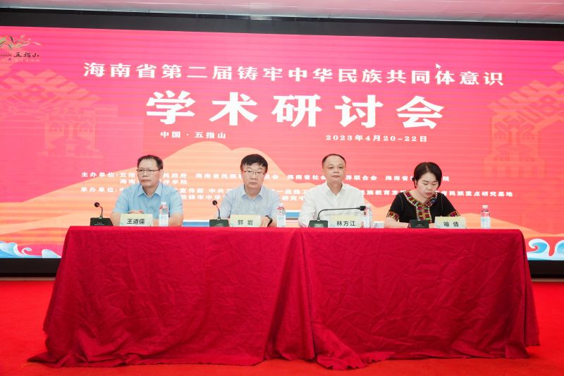 4月20日至21日,我校与五指山市人民政府、海南省社会科学界联合会(院)共同主办,海南热带海洋学院民族教育研究基地、铸牢中华民族共同体意识研究中心、民族学院等承办的“海南省第二届铸牢中华民族共同体意识学术研讨会”在五指山市成功举办。教育部民族教育发展中心郭岩主任,省委统战部民族事务处二级调研员何哲良,省民族宗教事务委员会文宣处四级调研员刘思宁,五指山市委副书记、政法委书记林方江,市委常委、统战部部长陈有强,市政协副主席姜凤云,海南热带海洋学院副校长王道儒等出席开幕式,五指山市委常委、宣传部部长喻倩主持。