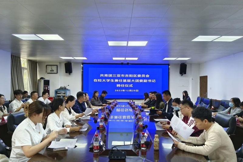 为落实团中央基层建设部对大学生社区实践计划的部署和海南省工作指引要求,进一步强化共青团校地合作,引领大学生踊跃投身社区基层治理建设。12月25日,我校团委与团吉阳区委在吉阳区政府第一会议室举行海南热带海洋学院在校大学生兼任基层大团委副书记聘任仪式。团吉阳区委书记高驰主持会议。我校有8名学生被聘任为基层大团委兼职副书记。