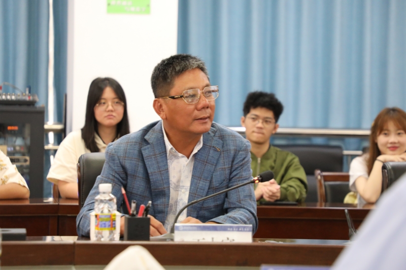 王大富结合个人创业经历向与会师生介绍了鸿洲游艇产业集团有限公司的发展史及良好的业内口碑。他表示,与海南热带海洋学院携手共建鸿洲国际游艇现代产业学院,开启了双方推进产教融合、深化校企合作的新起点。他围绕当前游艇行业发展趋势,介绍了游艇行业的发展前景、就业缺口和收入情况,鼓励在座同学努力学习本领,将来在游艇行业展翅翱翔。