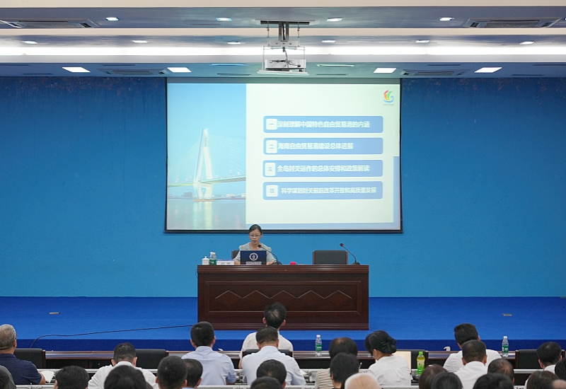 学校邀请省委深改办(自贸港工委办)改革和制度创新处处长郭晋以《海南自由贸易港建设进展与全岛封关运作情况介绍》为题作专题报告。郭晋围绕深刻理解中国特色自由贸易港的内涵、海南自由贸易港建设总体进展、全岛封关运作的总体安排和政策解读、科学谋划封关前后改革开放和高质量发展四个方面开展了专业细致、深入浅出的讲解,为广大党员干部上了一堂生动的“自贸港大课”。