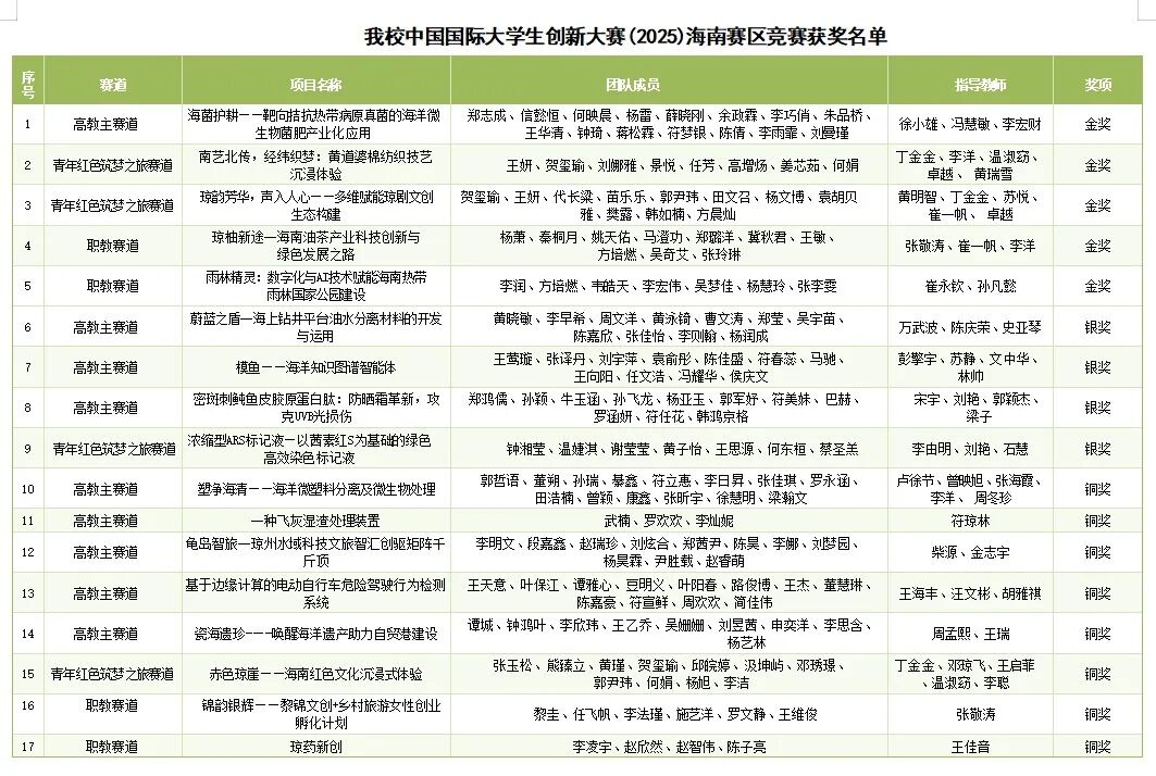 海南热带海洋学院在中国国际大学生创新大赛(2025)省赛中斩获佳绩