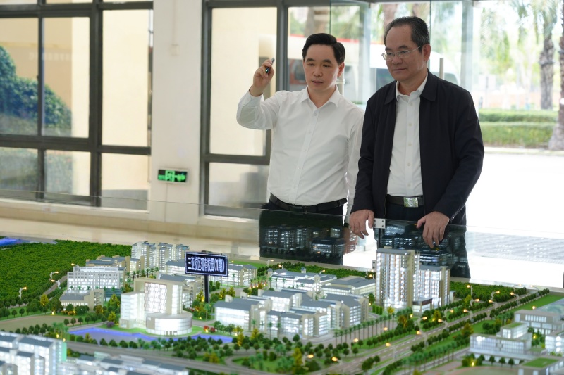 会前,邢孔政一行参观了校园规划沙盘。